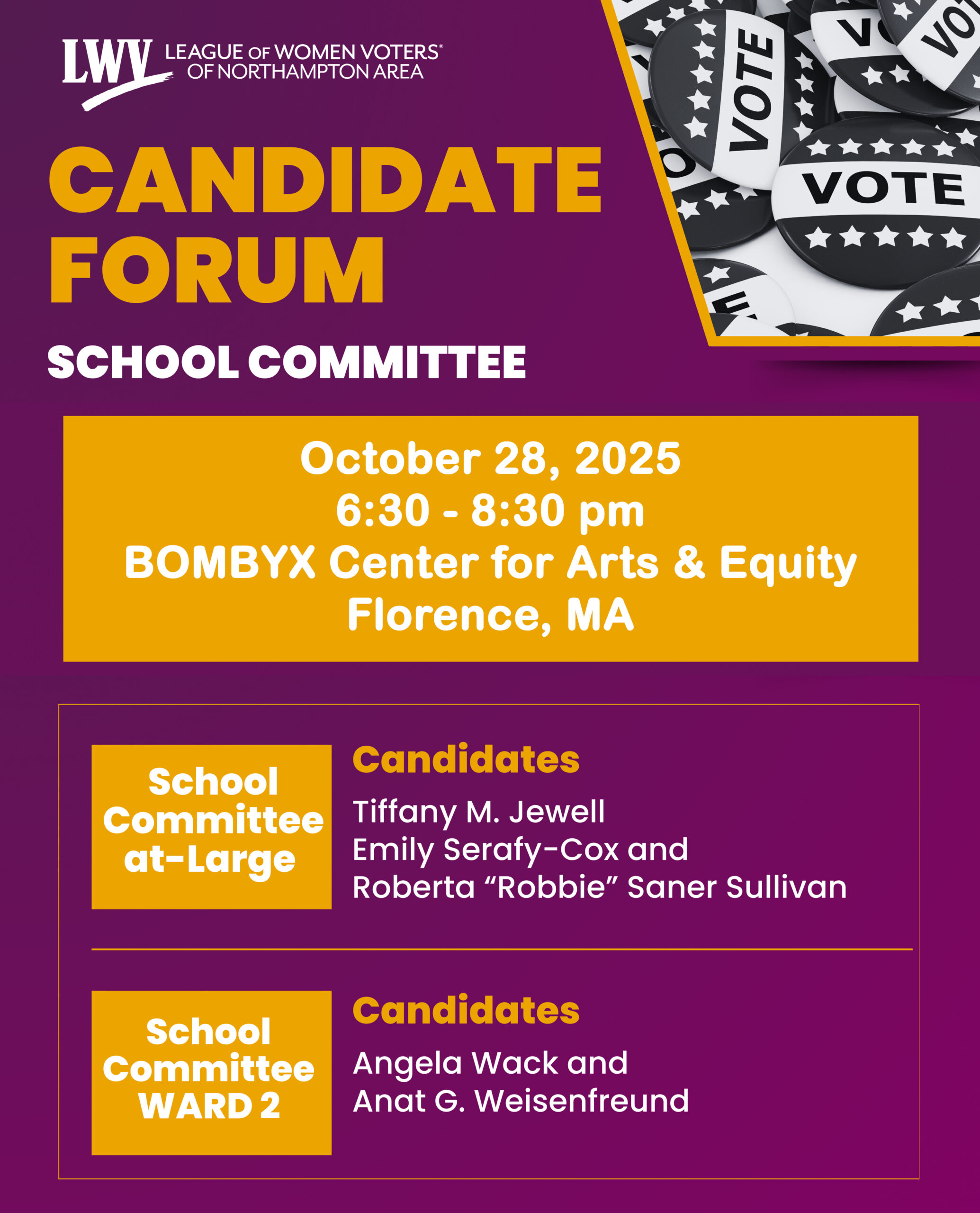 Write to your Representative and Senator about the critical need to revise Chapter 70 Funding. Northampton, Amherst, Holyoke school systems can’t balance their budgets for 2026, and are considering cutting teachers and programs because of insufficient Ch.70 Funds.